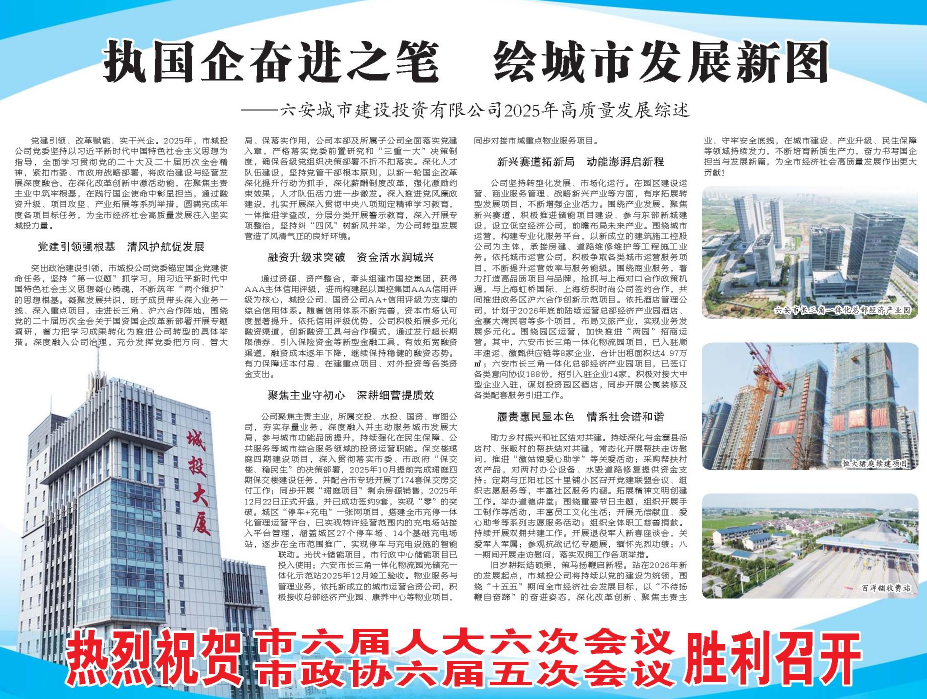 【皖西日?qǐng)?bào)】執(zhí)國(guó)企奮進(jìn)之筆 繪城市發(fā)展新圖 ——六安城市建設(shè)投資有限公司2025年高質(zhì)量發(fā)展綜述